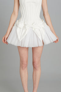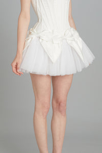 Bow Mini Skirt in Off-White Double-Faced Silk Satin