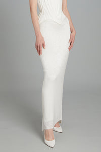 Ankle-Length Wasp Skirt in White Glass Beads
